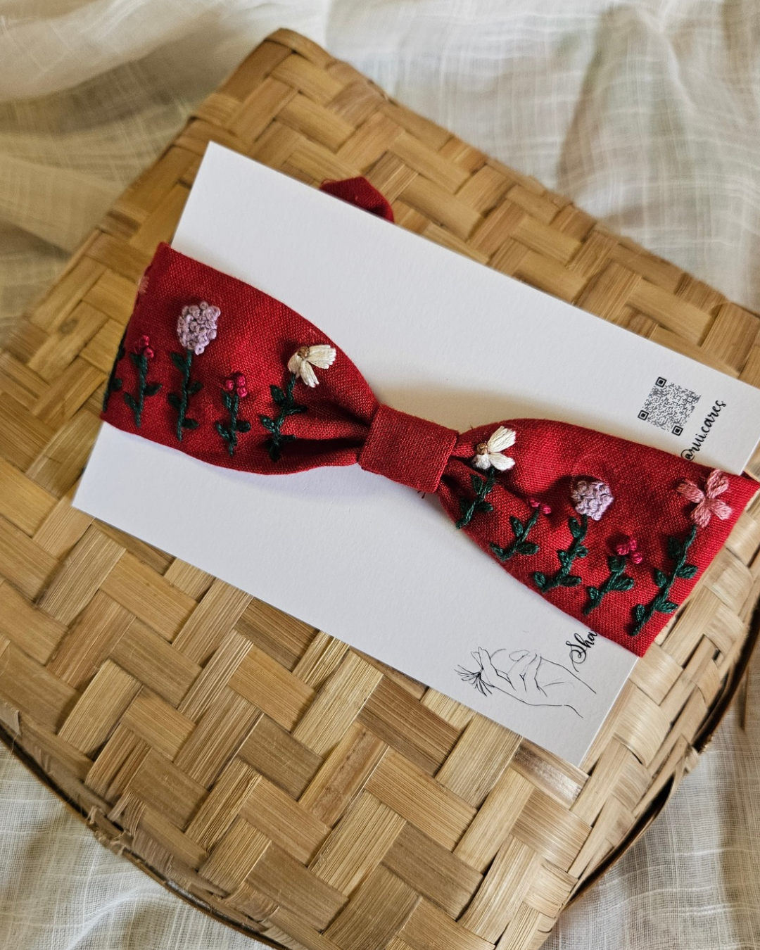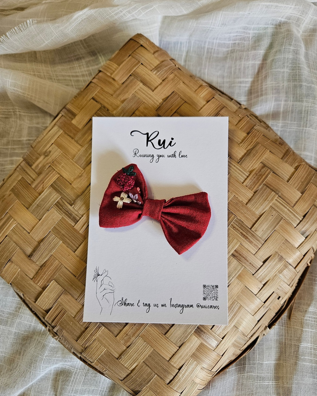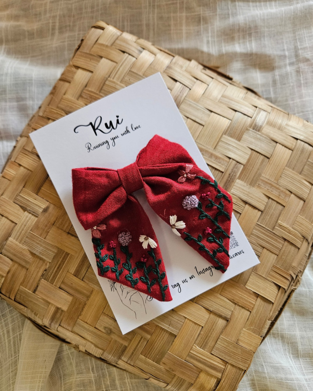 Founder's note: Merry Berry is inspired by the warmth and sparkle of festive childhood memories — twinkling lights, bright smiles and little moments that stay forever. Each stitch is carefully hand-embroidered to preserve the magic of handmade clothing. Thank you for choosing Rui.cares. Pair it with a matching headband, bow clip or sailor bow to make it picture perfect.